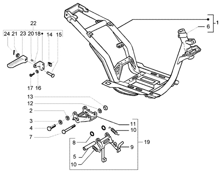 Soporte para caballete central -PIAGGIO- Vespa ET2 50 (ZAPC12000, ZAPC16000, ZAPC38100), Vespa LX 50 (ZAPC38101, ZAPC38104, ZAPC38400), Vespa LXV 50 (ZAPC38102), Vespa Primavera 50 (ZAPC53200), Vespa S 50 (ZAPC38103, ZAPC38402), Vespa Sprint 50 (ZAPC53201