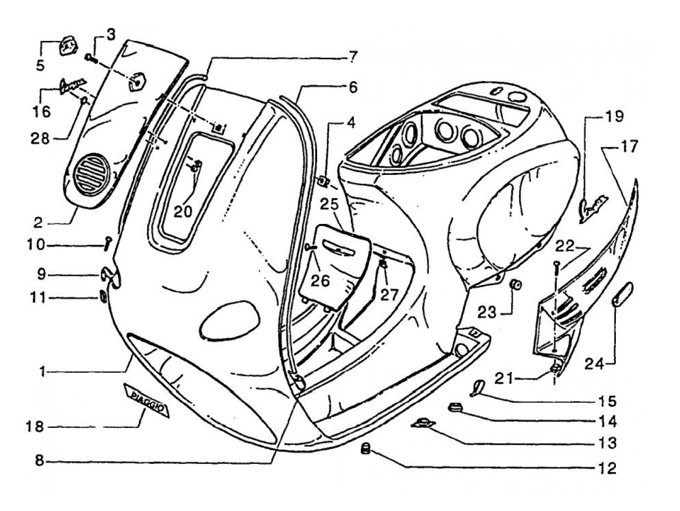Revestimiento lateral izquierdo -PIAGGIO- Vespa ET2, ET4