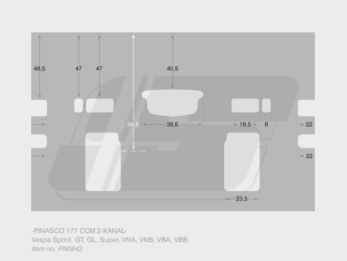 Ángulos de control muy moderados, una relación de compresión adecuada para el uso diario combinada con una larga vida útil y un elevado par motor inicial. Esto caracteriza al cilindro de fundición gris Pinasco para los motores VBA, VNB, VBB, Sprint y GL. Se adapta perfectamente a las características de los motores antiguos y, a pesar de tener mucha más potencia, sigue transmitiendo la "sensación de conducción Vespa" original.