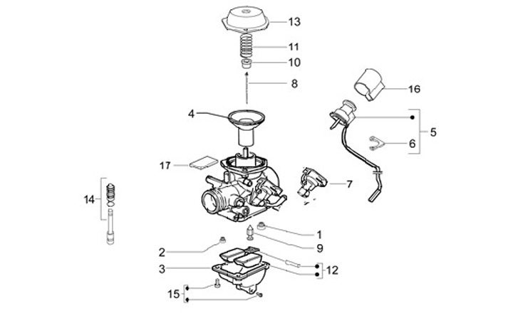 Válvula de mariposa con diafragma -PIAGGIO- Vespa ET4 125, LX 125-150, LXV 125, S 125-150, Piaggio Fly 125-150, TPH 125, Liberty 125-200, Aprilia Mojito 125, SR Motard 125, Sport City One 125