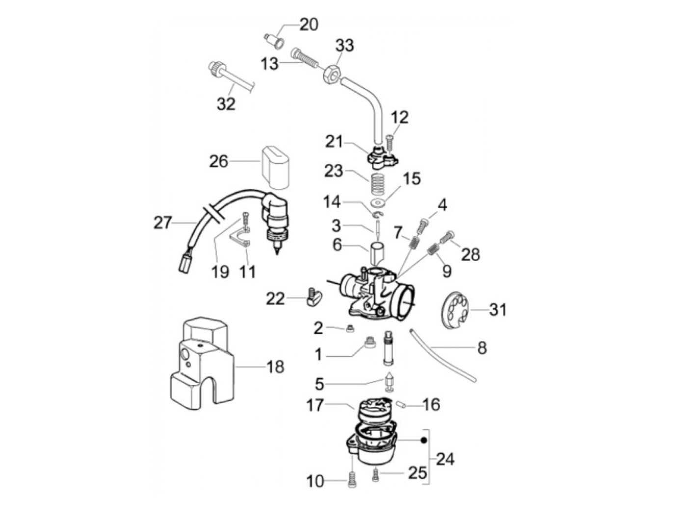 Placa de mariposa -PIAGGIO- carburador PHVA 17,5mm - utilizado originalmente en todos los motores Hyper2 (montado en el lado de admisión)