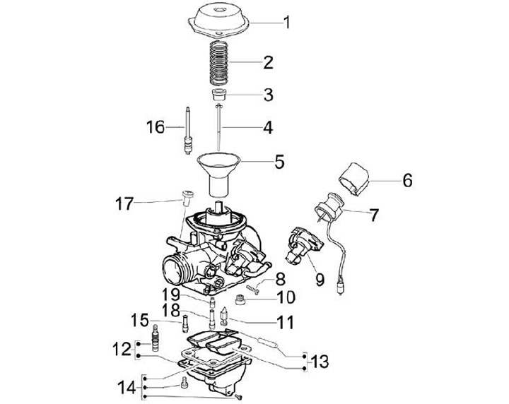 Corredera de mariposa con diafragma -PIAGGIO- para Keihin NCV20 - Vespa S 50 4T 4V, Aprilia Scarabeo 50 RST 4T 4V