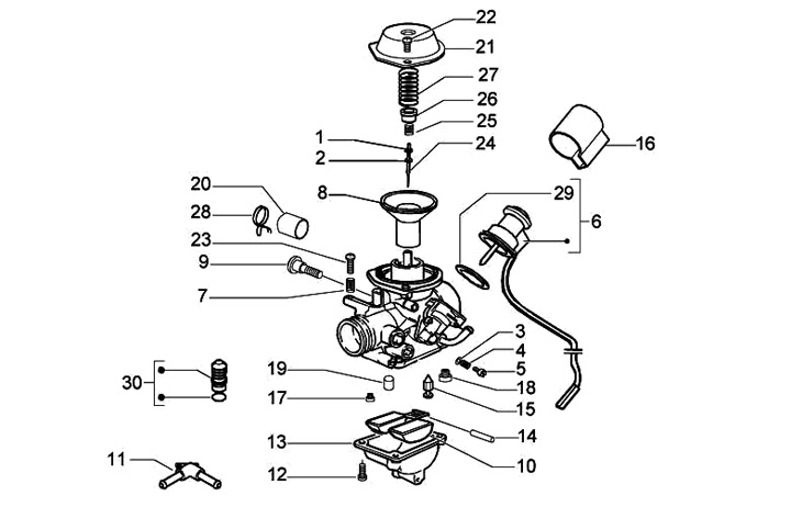 Válvula de mariposa con diafragma -CIF- Vespa GTL 125-200, Piaggio Beverly 125-250, X8 125-200, X9 125-200, Gilera DNA 125-180, Runner VX/VXR 125-200, Aprilia Atlantic 125-200, Scarabeo 125-200
