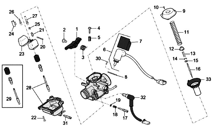 Válvula de mariposa con diafragma -PIAGGIO- Vespa ET4 125, LX 125-150, LXV 125, S 125-150, Piaggio Fly 125-150, TPH 125, Liberty 125-200, Aprilia Mojito 125, SR Motard 125, Sport City One 125