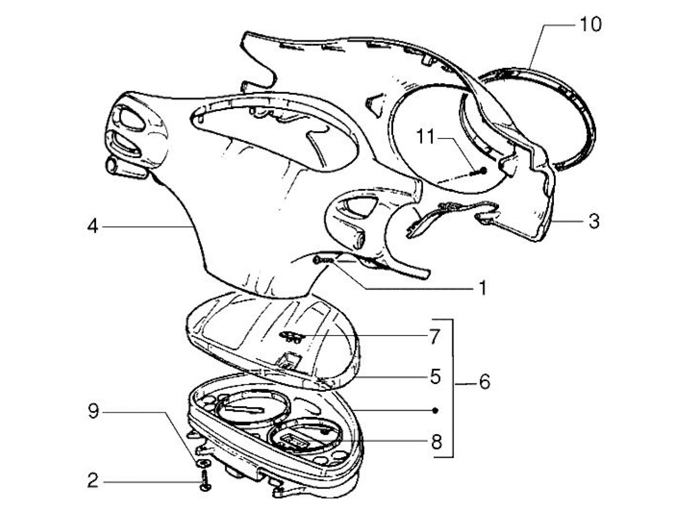Carenado manillar -PIAGGIO- Vespa ET2, ET4, Piaggio Liberty (ZAPC15, ZAPC28, ZAPM11, ZAPM22)