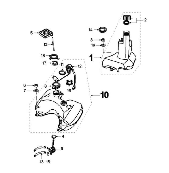 grifo gasolina -101 OCTANE- vacío - para Aprilia, Piaggio, Vespa, Malaguti, Peugeot, MBK, Derbi, Benelli, Yamaha - Ø=15mm