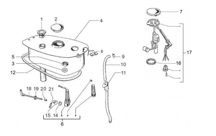 Grifo de gasolina -VESPA- PX, Sprint150 (VLB1T), Rally180 (VSD1T), Rally200 (VSE1T), GT125 (VNL2T), GTR125 (VNL2T), GL150 (VLA1T), Super, VNB, VNA , VBA, VBB, V50, V90, SS50, SS90, PV125, ET3, PK XL2