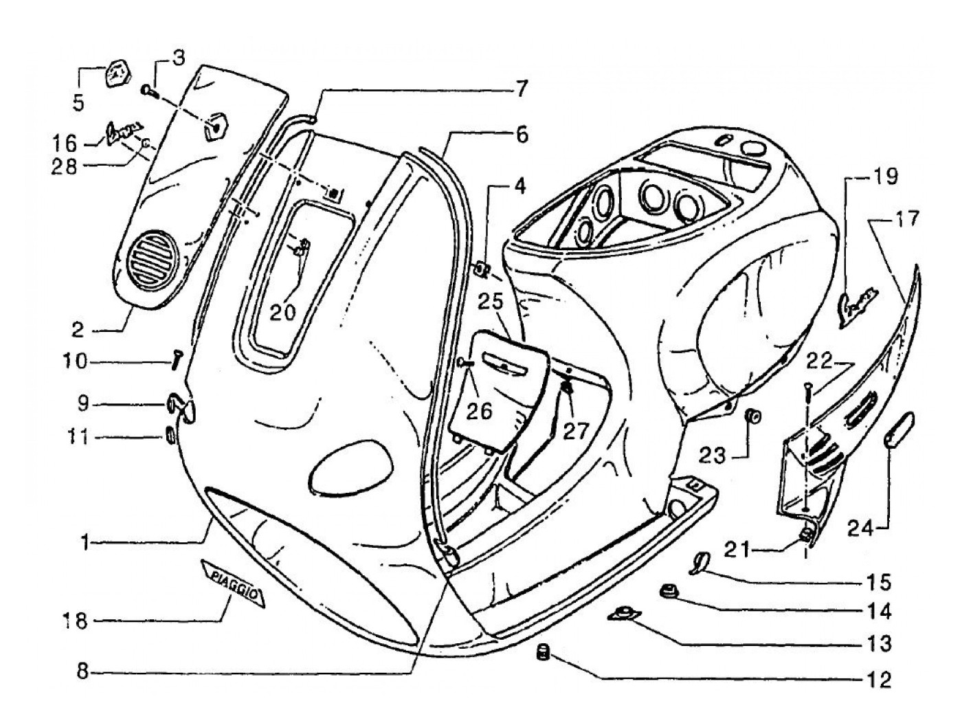 Revestimiento lateral izquierdo -PIAGGIO- Vespa ET2, ET4