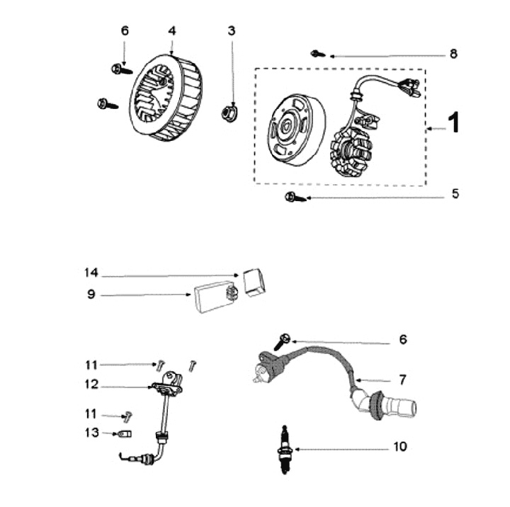 Encendido -Placa base CALIDAD OEM- GY6 (4 tiempos) 50 ccm (139QMA/B) - Tipo 2