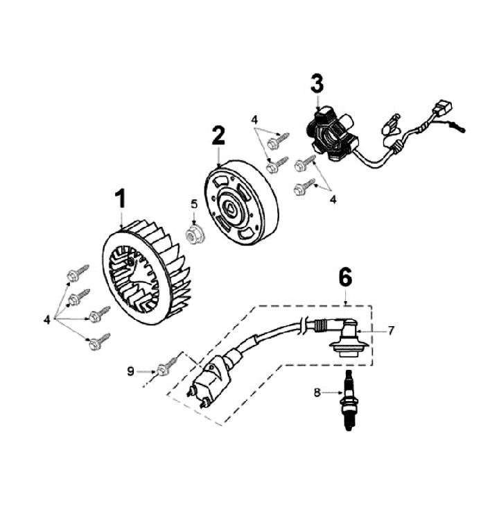 Bobina de encendido -OEM QUALITY- Peugeot 50-100 ccm, Honda 50 ccm, Kymco 50 ccm - SPEEDFIGHT1, SPEEDFIGHT2, SPEEDFIGHT3, XFIGHT, TKR, TREKKER, VIVACITY, BUXY, ELYSEO, ELYSTAR, SPEEDAKE, SQUAB, ST, SV, ZENITH