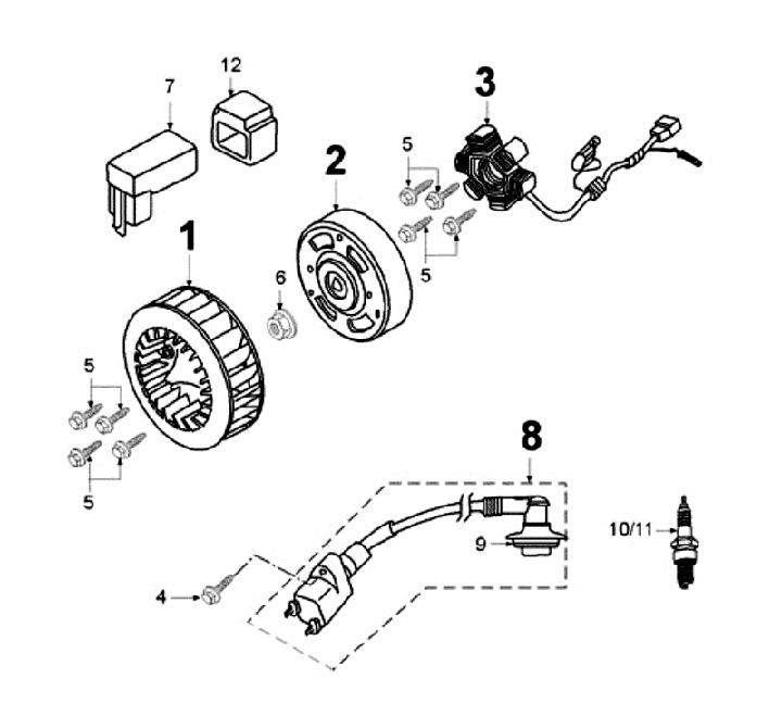 Bobina de encendido -OEM QUALITY- Peugeot 50-100 ccm, Honda 50 ccm, Kymco 50 ccm - SPEEDFIGHT1, SPEEDFIGHT2, SPEEDFIGHT3, XFIGHT, TKR, TREKKER, VIVACITY, BUXY, ELYSEO, ELYSTAR, SPEEDAKE, SQUAB, ST, SV, ZENITH
