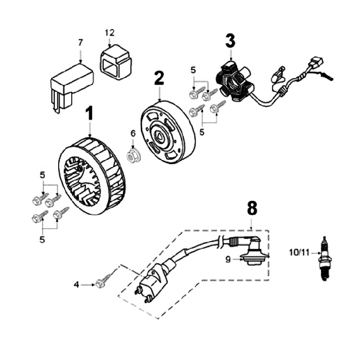 Bobina de encendido -OEM QUALITY- Peugeot 50-100 ccm, Honda 50 ccm, Kymco 50 ccm - SPEEDFIGHT1, SPEEDFIGHT2, SPEEDFIGHT3, XFIGHT, TKR, TREKKER, VIVACITY, BUXY, ELYSEO, ELYSTAR, SPEEDAKE, SQUAB, ST, SV, ZENITH