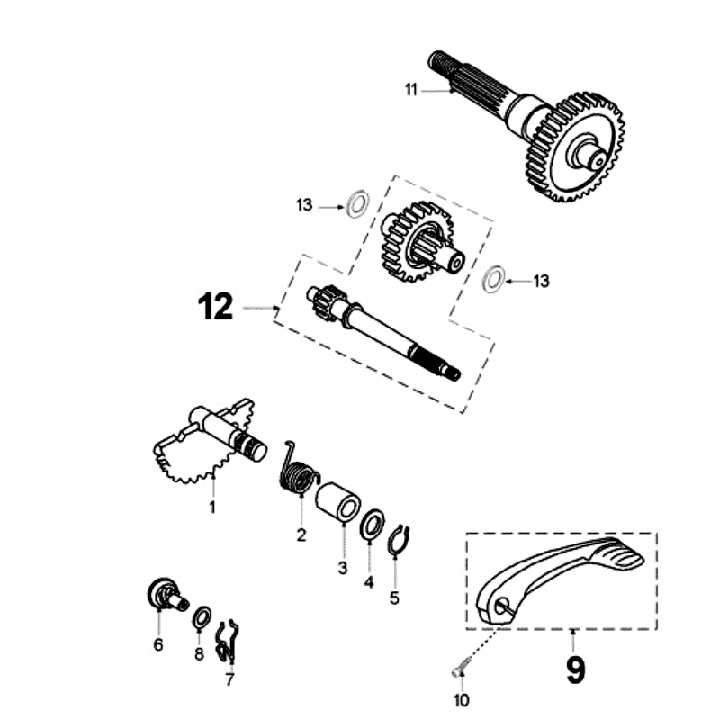 Piñón Kickstarter -OEM QUALITY- Peugeot 50 ccm (modelos con bomba de aceite Mikuni) - 12.5mm - 7 dientes