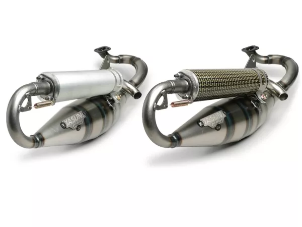 La versión Midrace de la serie Z de Yasuni deleita con más volumen de caja de resonancia y un mayor diámetro de colector. Esto hace del R el compañero ideal para cilindros deportivos y de competición de 70 cc. El Yasuni R es un escape muy fácil de conducir con buenos valores de aceleración debido a la salida de potencia muy temprana en combinación con un rico par motor. Debido al alto par motor, el R también se puede sintonizar con bastante facilidad y bien.