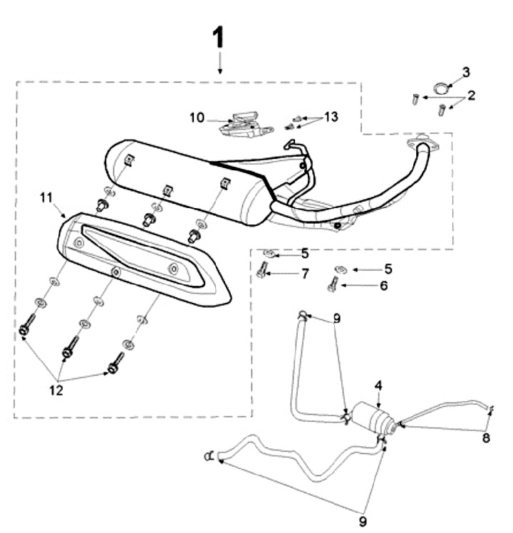 Escape -TECNO- 'Mopedpott', colector grueso Ø22mm- Piaggio Ciao, Bravo - Negro (apto para vehículos con caballete central)