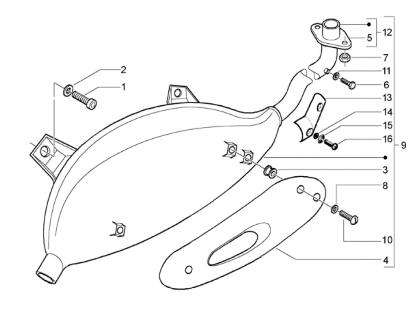 Brida del colector de escape -PIAGGIO- Vespa GTL 125-200, GTS 300, GTV 300, Piaggio Beverly 125-250, X8 125-200, X9 125-200, Gilera DNA 125-180, Runner VX 125, VXR 200