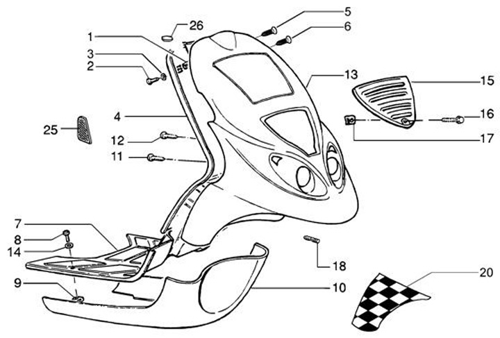 Carenado inferior -PIAGGIO- NRG (ZAPC18), NRG Extreme (ZAPC21, ZAPC22), NRG MC2 (ZAPC04), NRG MC3 (ZAPC21, ZAPC32)