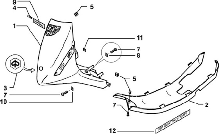 Carenado delantero -PIAGGIO- Zip 2 AC (LBMC25, LBMM25, ZAPC25, ZAPM25)