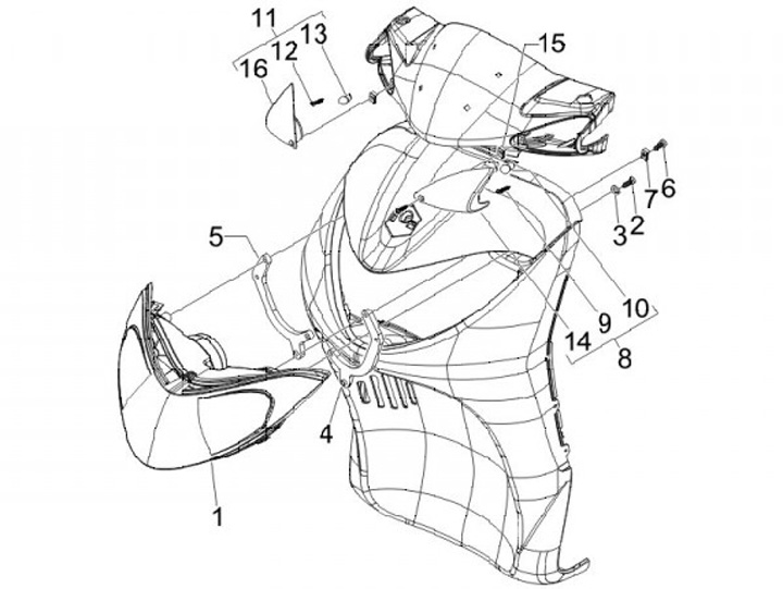 Tornillo para paneles M6 x 16mm sin resalte -PIAGGIO- cabeza Phillips