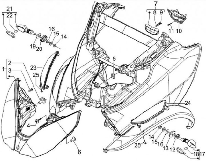 Indicador -PIAGGIO- Gilera Fuoco 500, GP 800, Piaggio MP3 250-500, Aprilia SRV 850 - blanco - delantero izquierdo/trasero derecho