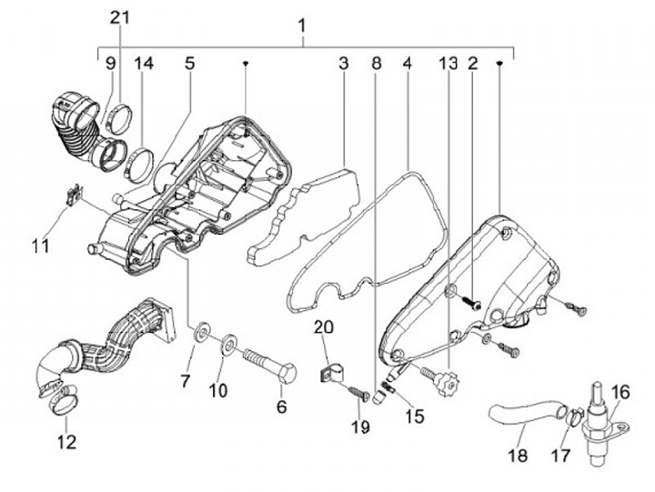 Manguera de admisión para caja de filtro de aire -PIAGGIO- Vespa LX 50-150, LXV 125, S 50-150, Primavera 50, Sprint 50, Piaggio Fly 50-150, Liberty 125-150, TPH 125, Aprilia Mojito 125, Sport City One 125, SR Motard 50-125