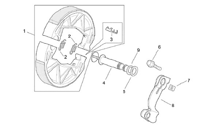Leva de freno trasero -PIAGGIO- todos los modelos Piaggio/Gilera 50-125 ccm con pastillas de freno de 110mm de diámetro