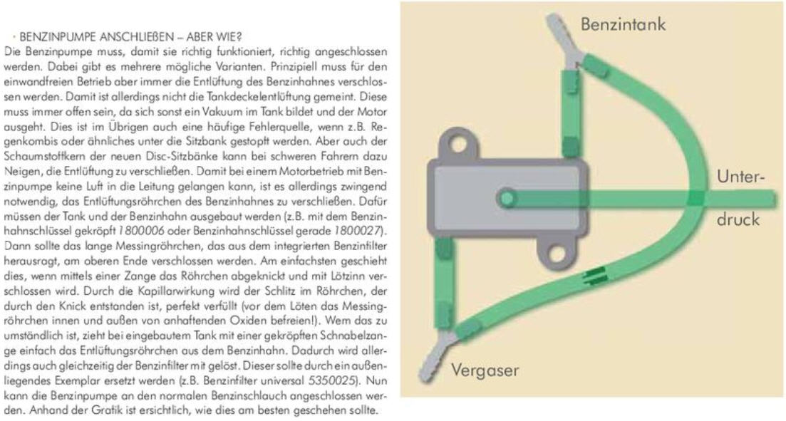 El kit completo de la bomba de gasolina contiene todo lo necesario para su instalación. El kit contiene la bomba de gasolina de diafragma, dos conectores de manguera en Y, un manguito reductor (que debe instalarse en la derivación), dos metros de manguera de gasolina, un conector de vacío con llave tamaño 17 para conectar la manguera de vacío al motor, 10 abrazaderas de manguera e instrucciones de instalación detalladas.