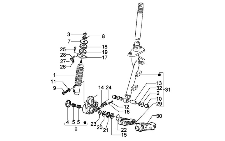 Horquilla de montaje del amortiguador/parte superior del amortiguador -PIAGGIO- Vespa GT 250 (ZAPM45102), Vespa GT L 125 (ZAPM31100, ZAPM31101), Vespa GT L 200 (ZAPM31200), Vespa GTS 125 (ZAPM31300), Vespa GTS 250 (ZAPM45100, ZAPM45101), Vespa GTS 300 (ZA