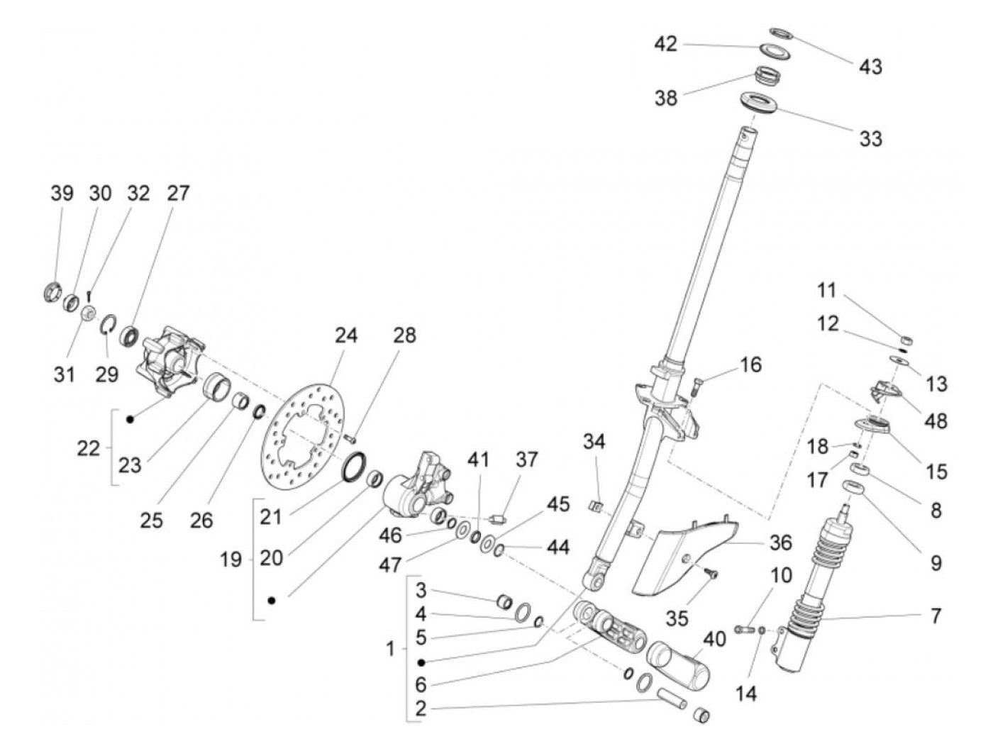 Placa de anclaje freno - soporte pinza freno delantero -PIAGGIO- Vespa ET2 50 (ZAPC16000, ZAPC12000, ZAPC38100), Vespa ET4 125 (ZAPM19000, ZAPM04000), Vespa ET4 150 (ZAPM19000), Vespa ET4 50 50 (ZAPC26000, ZAPC26100), Vespa LT 125 (RP8M66503), Vespa LT 15