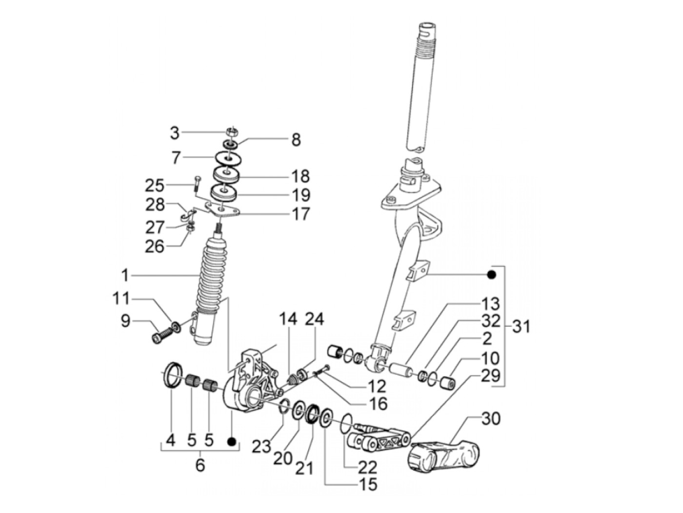Horquilla de montaje del amortiguador/parte superior del amortiguador -PIAGGIO- Vespa GT 250 (ZAPM45102), Vespa GT L 125 (ZAPM31100, ZAPM31101), Vespa GT L 200 (ZAPM31200), Vespa GTS 125 (ZAPM31300), Vespa GTS 250 (ZAPM45100, ZAPM45101), Vespa GTS 300 (ZA