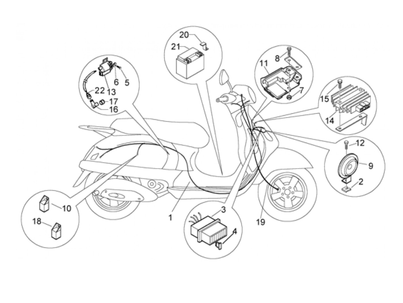 Bocina -PIAGGIO 12V DC- Vespa GT L 125 (ZAPM31100, ZAPM31101), Vespa GT L 200 (ZAPM31200), Vespa GTS 125 (ZAPM31300), Vespa GTS 250 (ZAPM45100, ZAPM45101), Vespa GTV 125 (ZAPM31301), Piaggio Liberty (ZAPC51101, ZAPM78103, ZAPC51103), Piaggio Liberty 125 (