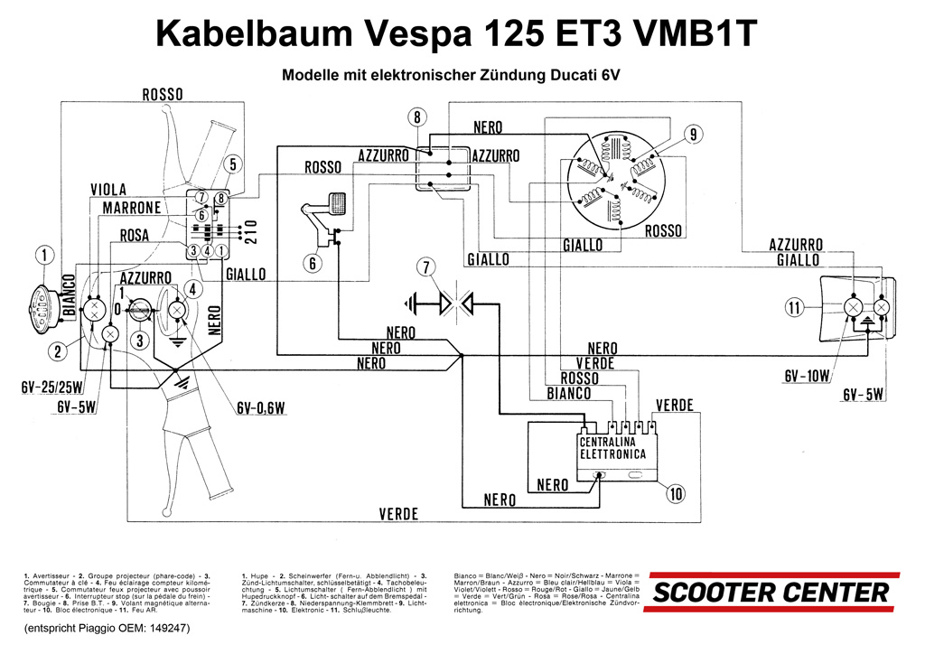 Para garantizar que el vehículo se puede restaurar fiel al original, nos suministra el fabricante que también produjo los mazos de cables originales para Piaggio en su día. Esto se ve, se siente y se nota.