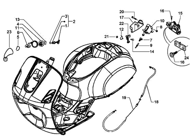 Cierre de la banqueta -PIAGGIO- Vespa GT 250 (ZAPM45102), Vespa GT L 125 (ZAPM31100, ZAPM31101), Vespa GT L 200 (ZAPM31200), Vespa GTS 125 (ZAPM31300, ZAPMA3100, ZAPMA3200, ZAPMA3700), Vespa GTS 150 (ZAPMA3200, ZAPMA3100), Vespa GTS 250 (ZAPM45100, ZAPM45