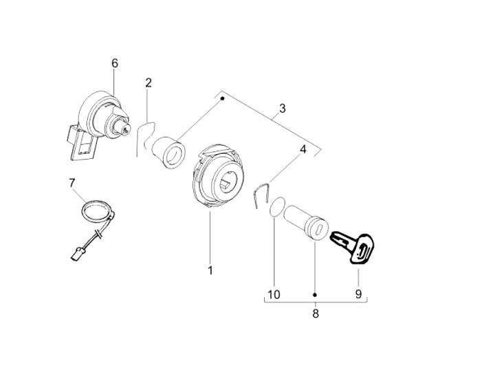 Casquillo On-Off-Lock -PIAGGIO- Vespa GT 250 (ZAPM45102), Vespa GT L 125 (ZAPM31100, ZAPM31101), Vespa GT L 200 (ZAPM31200), Vespa GTS 125 (ZAPM31300), Vespa GTS 250 (ZAPM45100, ZAPM45101), Vespa GTS 300 (ZAPM45200, ZAPM45202), Vespa GTS Super 125 (ZAPM45