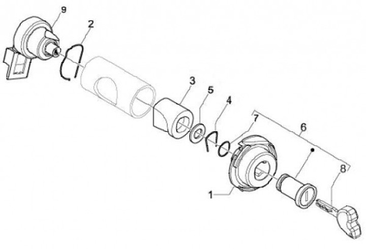 Casquillo On-Off-Lock -PIAGGIO- Vespa GT 250 (ZAPM45102), Vespa GT L 125 (ZAPM31100, ZAPM31101), Vespa GT L 200 (ZAPM31200), Vespa GTS 125 (ZAPM31300), Vespa GTS 250 (ZAPM45100, ZAPM45101), Vespa GTS 300 (ZAPM45200, ZAPM45202), Vespa GTS Super 125 (ZAPM45