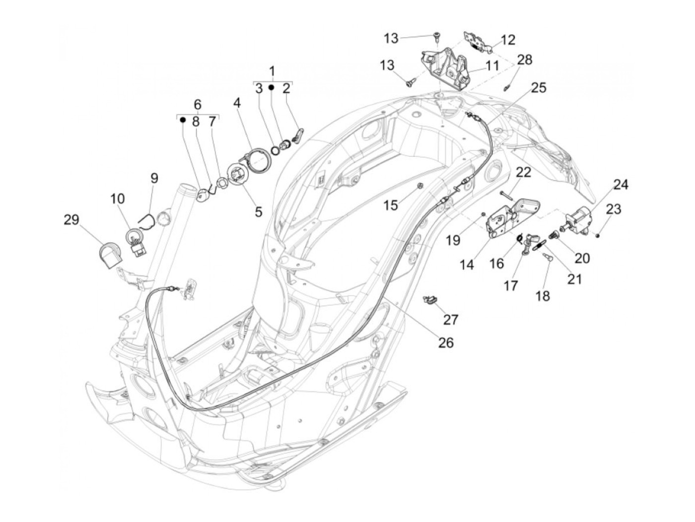 Cierre de la banqueta -PIAGGIO- Vespa GT 250 (ZAPM45102), Vespa GT L 125 (ZAPM31100, ZAPM31101), Vespa GT L 200 (ZAPM31200), Vespa GTS 125 (ZAPM31300, ZAPMA3100, ZAPMA3200, ZAPMA3700), Vespa GTS 150 (ZAPMA3200, ZAPMA3100), Vespa GTS 250 (ZAPM45100, ZAPM45