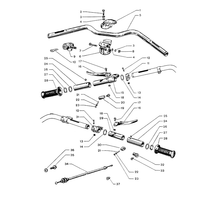 Palanca de freno - Palanca de embrague -LAMBRETTA- D 125 (a partir de la serie 2), LD 125 (a partir de la serie 2), D 150, LD 150, E, F