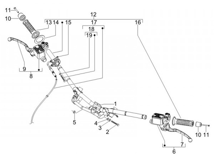 Manillares -PIAGGIO- Gilera Runner 125 (ZAPM24200, ZAPM24100, ZAPM46100, ZAPM24000, ZAPM07000, ZAPM46300, ZAPM46301), Gilera Runner 180 (ZAPM08000), Gilera Runner 200 (ZAPM24300, ZAPM46200, ZAPM46400, ZAPM46401), Gilera Runner 50 (ZAPC46100, ZAPC46200, ZA