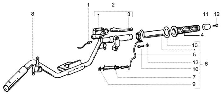 Manillares -PIAGGIO- Gilera Runner 125 (ZAPM24200, ZAPM24100, ZAPM46100, ZAPM24000, ZAPM07000, ZAPM46300, ZAPM46301), Gilera Runner 180 (ZAPM08000), Gilera Runner 200 (ZAPM24300, ZAPM46200, ZAPM46400, ZAPM46401), Gilera Runner 50 (ZAPC46100, ZAPC46200, ZA
