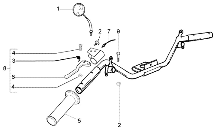 Palanca de freno izquierda -PIAGGIO- Vespa LX 125 (ZAPM44100, ZAPM44300, ZAPM68100, ZAPM68300, ZAPM68303), Vespa LX 150 (ZAPM44200, ZAPM44400, ZAPM68400), Vespa LX 50 (ZAPC38700, ZAPC38101, ZAPC38300, ZAPC38900, ZAPC38400, ZAPC38104), Vespa LXV 50 (ZAPC38