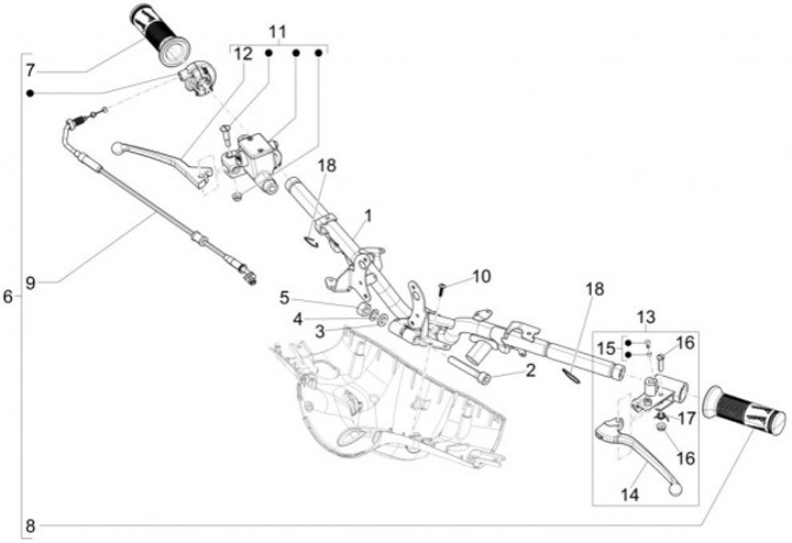 Manillar -PIAGGIO- Vespa Primavera 125 (ZAPM81100, ZAPM81101, ZAPMA1100, RP8M82500, RP8M82821, RP8M82100, RP8M82310, ZAPMA1101, ZAPMD1100), Vespa Primavera 150 (ZAPM81200, ZAPMA1200, ZAPM81201, ZAPMA1201, ZAPMD120), Vespa Primavera 50 (ZAPC53200, ZAPC5310