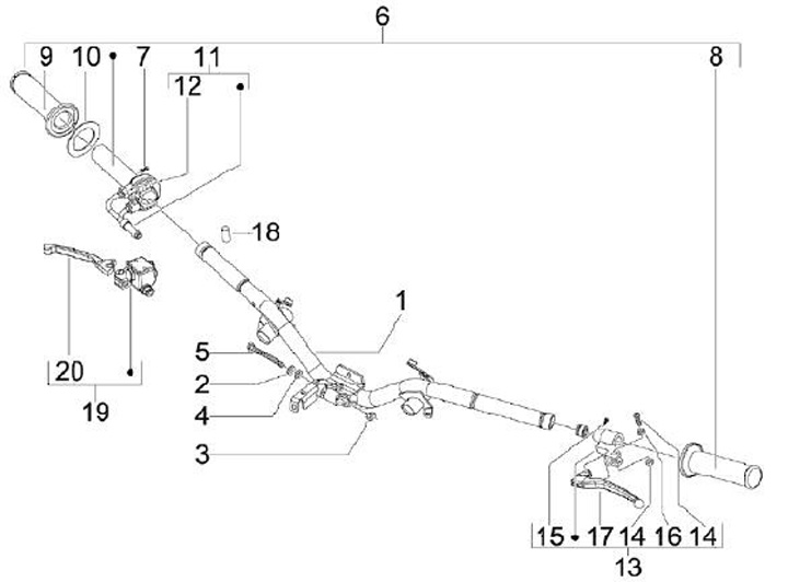 Manillar -PIAGGIO- Vespa S 125 (ZAPM44302, ZAPM68101, ZAPM68301), Vespa S 150 (ZAPM44402, ZAPM68201), Vespa S 50 (ZAPC38103, ZAPC38600, ZAPC38402, ZAPC38901)