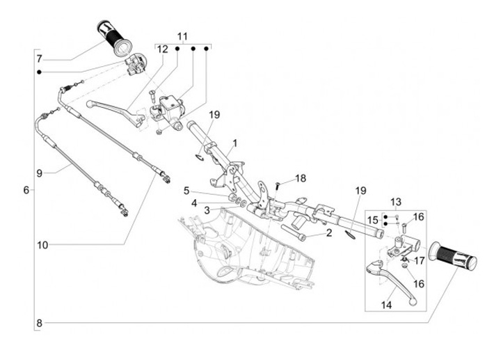Manillar -PIAGGIO- Vespa Primavera 125 (ZAPM81100, ZAPM81101, ZAPMA1100, RP8M82500, RP8M82821, RP8M82100, RP8M82310, ZAPMA1101, ZAPMD1100), Vespa Primavera 150 (ZAPM81200, ZAPMA1200, ZAPM81201, ZAPMA1201, ZAPMD120), Vespa Primavera 50 (ZAPC53200, ZAPC5310