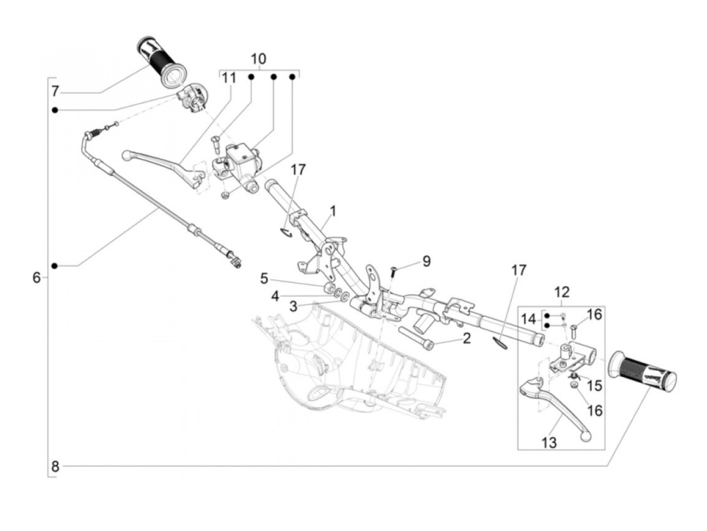 Manillar -PIAGGIO- Vespa Primavera 125 (ZAPM81100, ZAPM81101, ZAPMA1100, RP8M82500, RP8M82821, RP8M82100, RP8M82310, ZAPMA1101, ZAPMD1100), Vespa Primavera 150 (ZAPM81200, ZAPMA1200, ZAPM81201, ZAPMA1201, ZAPMD120), Vespa Primavera 50 (ZAPC53200, ZAPC5310