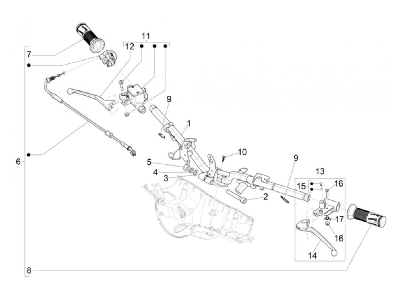 Manillar -PIAGGIO- Vespa Primavera 125 (ZAPM81100, ZAPM81101, ZAPMA1100, RP8M82500, RP8M82821, RP8M82100, RP8M82310, ZAPMA1101, ZAPMD1100), Vespa Primavera 150 (ZAPM81200, ZAPMA1200, ZAPM81201, ZAPMA1201, ZAPMD120), Vespa Primavera 50 (ZAPC53200, ZAPC5310