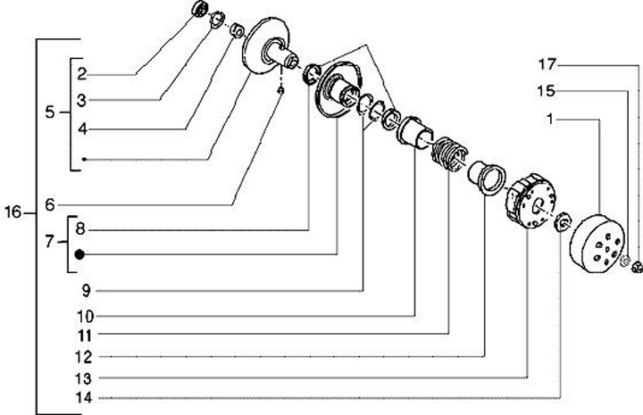 Convertidor de par de bloque deslizante -PIAGGIO- Piaggio 50cm 2 tiempos (excepto Sfera (NSL1T) y Zip (SSL1T)), Piaggio 50-100 ccm 4 tiempos