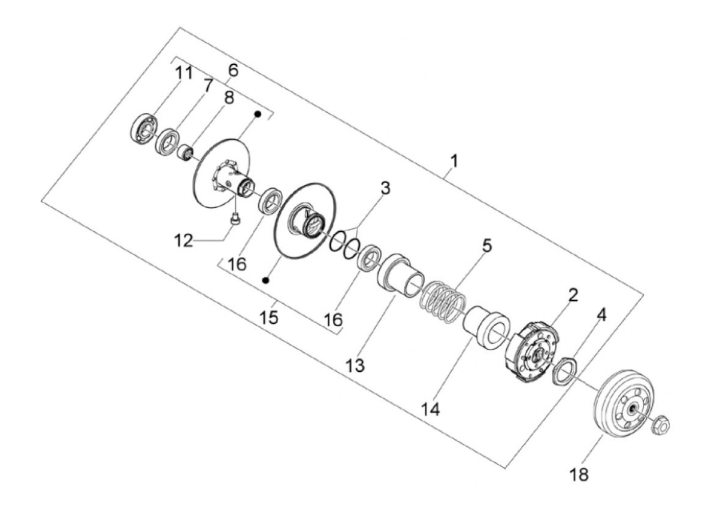 Convertidor con embrague -PIAGGIO- Vespa ET2 50, ET2 inietione 50, LX 50, LXV 50, S 50, Piaggio Liberty 50, Zip II 50, Fly 100, Free 50, Free 100, TPH 50, NRG MC3 50, Gilera Stalker, Aprilia Scarabeo 100, Derbi Atlantis 100