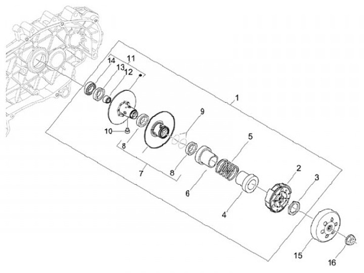 Convertidor con embrague -PIAGGIO- Vespa ET2 50, ET2 inietione 50, LX 50, LXV 50, S 50, Piaggio Liberty 50, Zip II 50, Fly 100, Free 50, Free 100, TPH 50, NRG MC3 50, Gilera Stalker, Aprilia Scarabeo 100, Derbi Atlantis 100