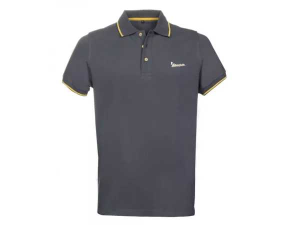 Logotipo Vespa® reflectante en el pecho, botones y cuello interior en color de contraste, bordado "Tricolore" en el lateral. Impresión reflectante del perfil Vespa en la espalda. Material: 100% algodón piqué (tejido doble).