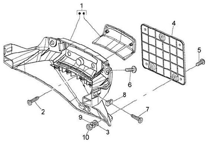 Soporte de matrícula -PIAGGIO- Vespa GT 250 (ZAPM45102), Vespa GT L 125 (ZAPM31100, ZAPM31101), Vespa GT L 200 (ZAPM31200), Vespa GTS 125 (ZAPM31300), Vespa GTS 250 (ZAPM45100, ZAPM45101), Vespa GTS 300 (ZAPM45200, ZAPM45202), Vespa GTS